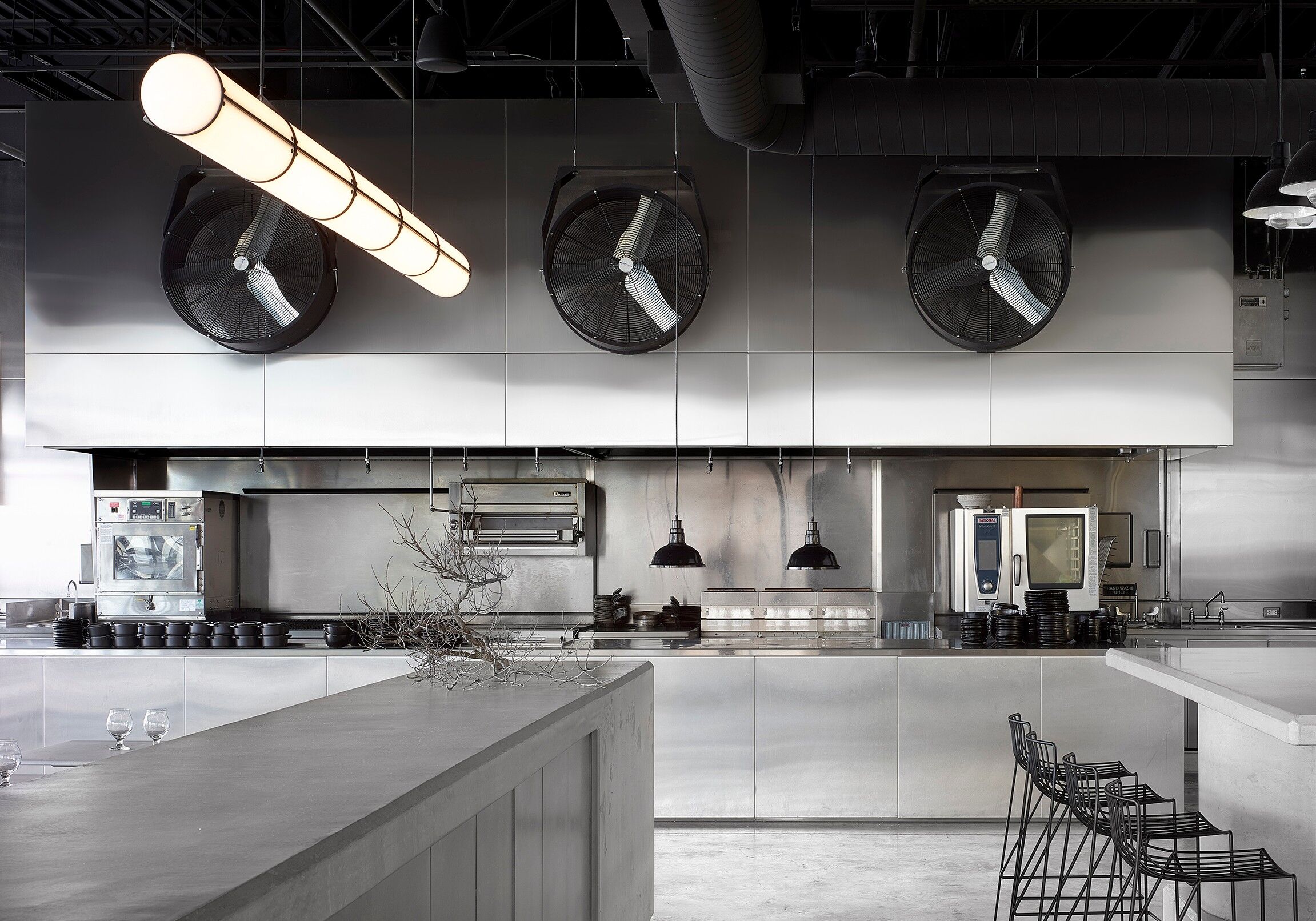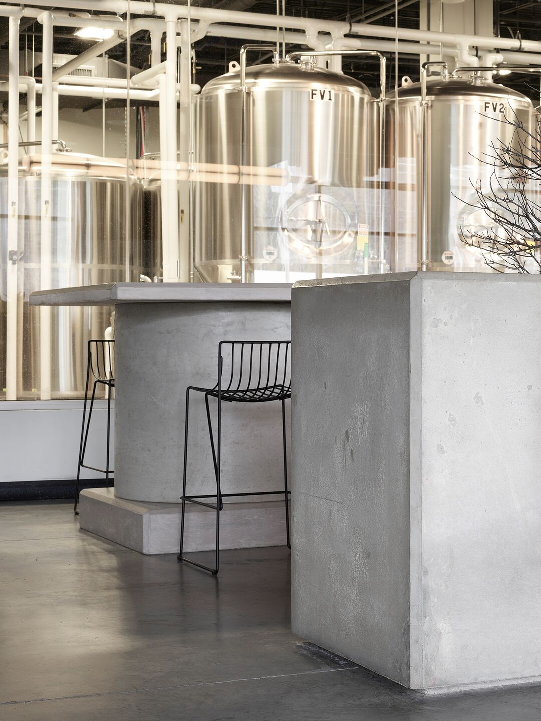 Für die Bad Lab Beer Company entwarf der Stockholmer Architekt Richard Lindvall eine wirklich coole Version einer Brauerei. Neben viel Beton und Edelstahl, kamen Tio Stühle und Barhocker von Massproductions zum Einsatz.