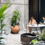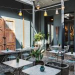 Tio Stühle im großflächigen Einsatz zusammen mit den passenden Tischen - diese wurden jedoch mit Marmorplatten ausgestattet.